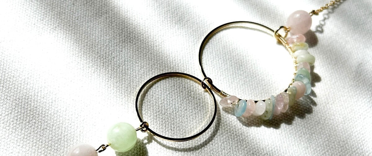 空間に太陽の虹色のエネルギーを呼び込む天然石のサンキャッチャー、パワーストーンアクセサリーを製作しています。