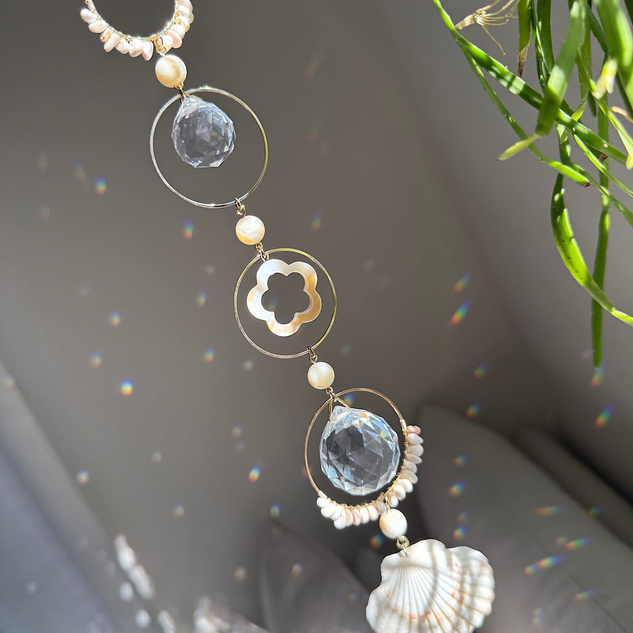 豊かな海の恵み、マザーオブパールのサンキャッチャーです。