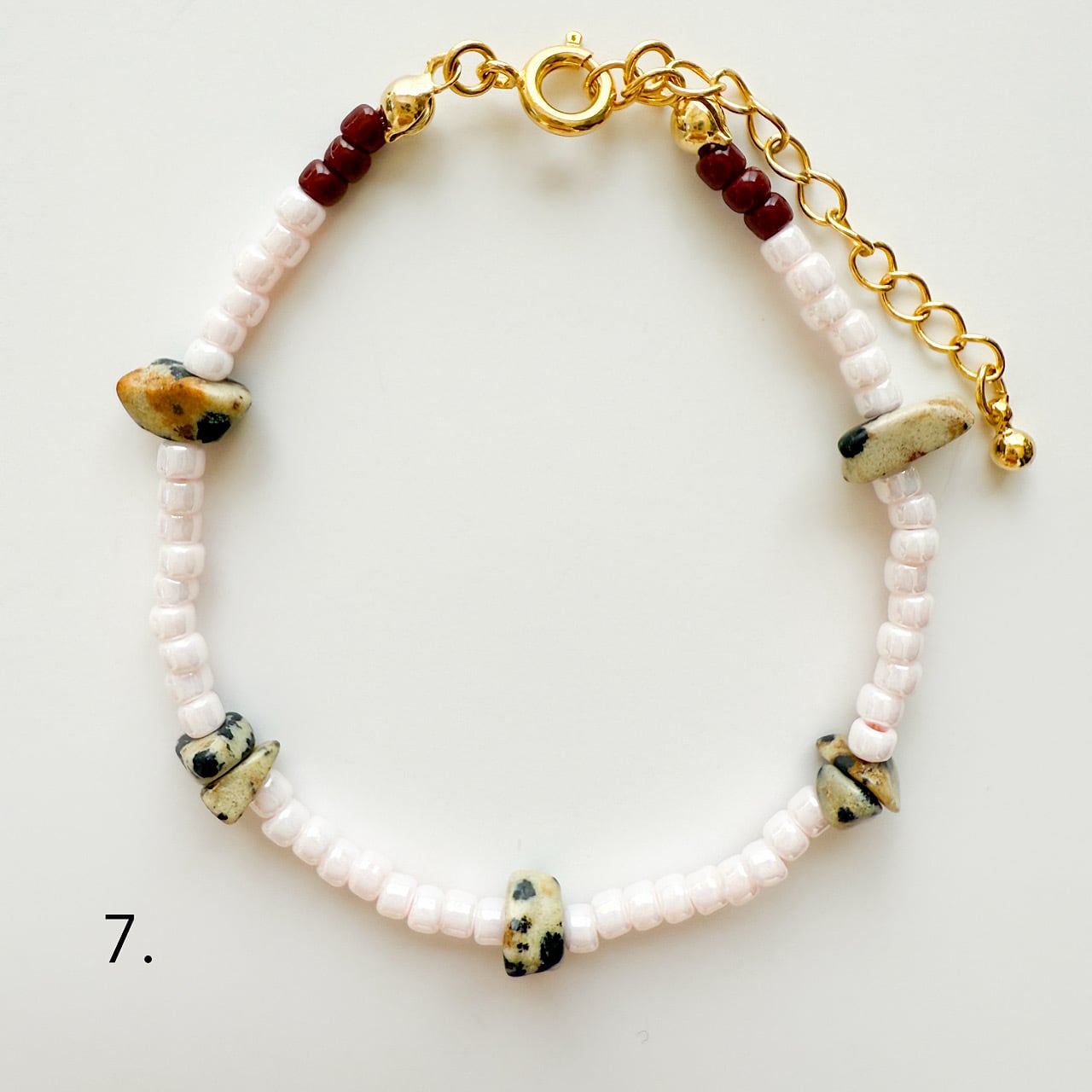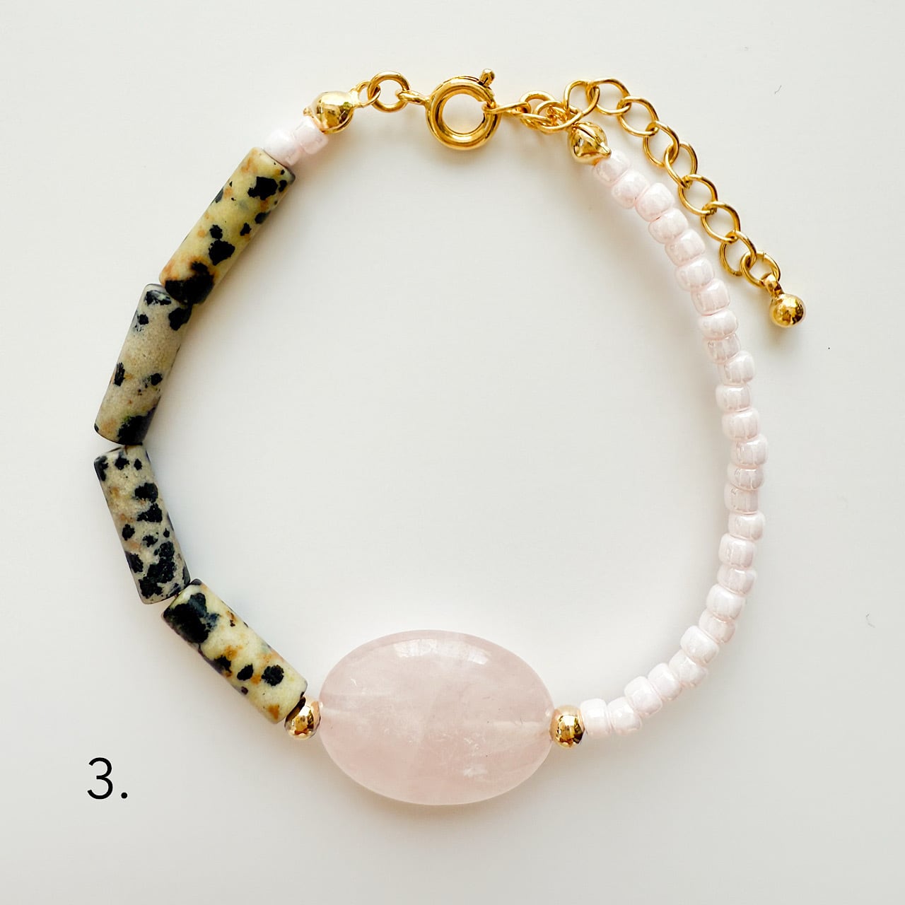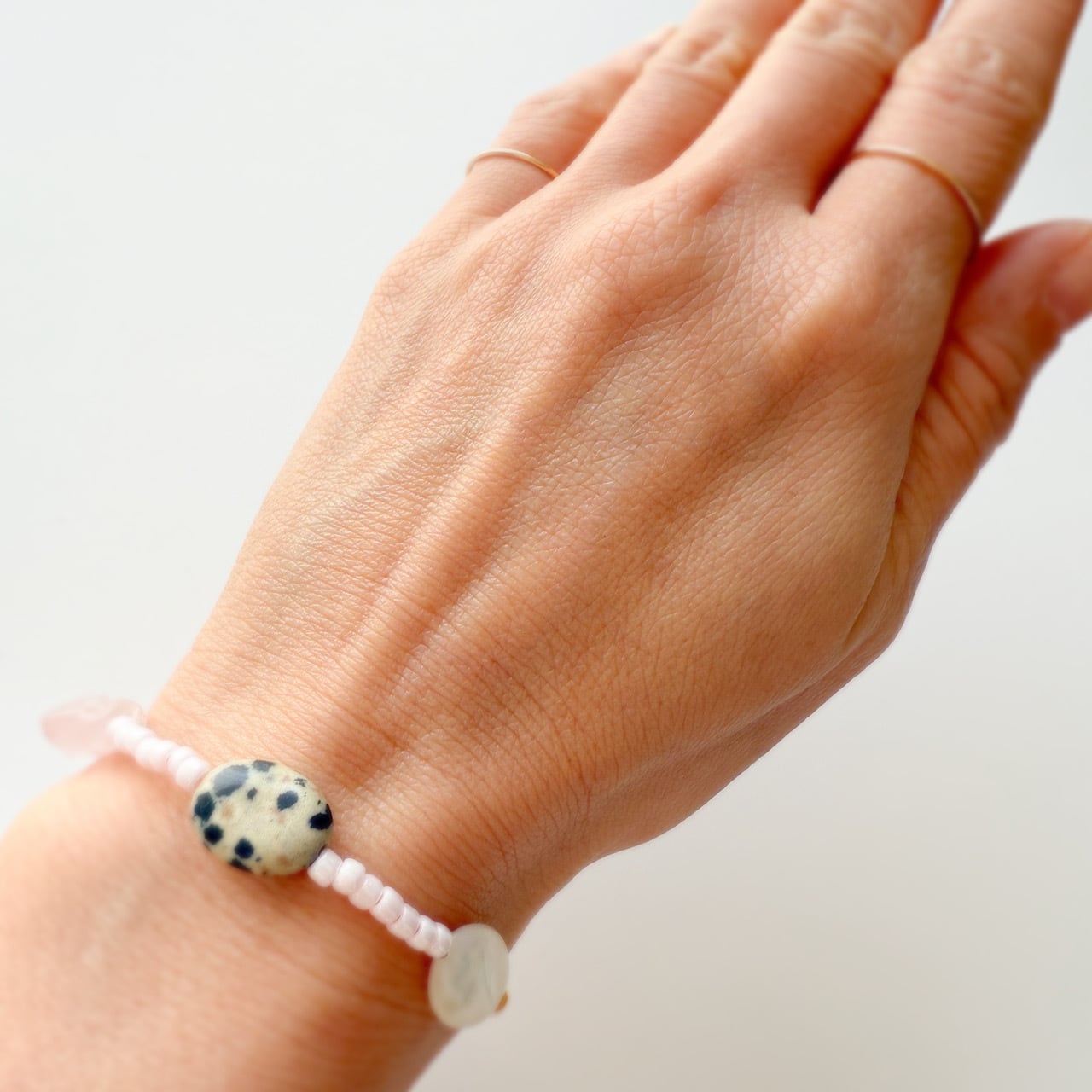5. ローズクォーツ、ダルメシアンジャスパー、マザーオブパール