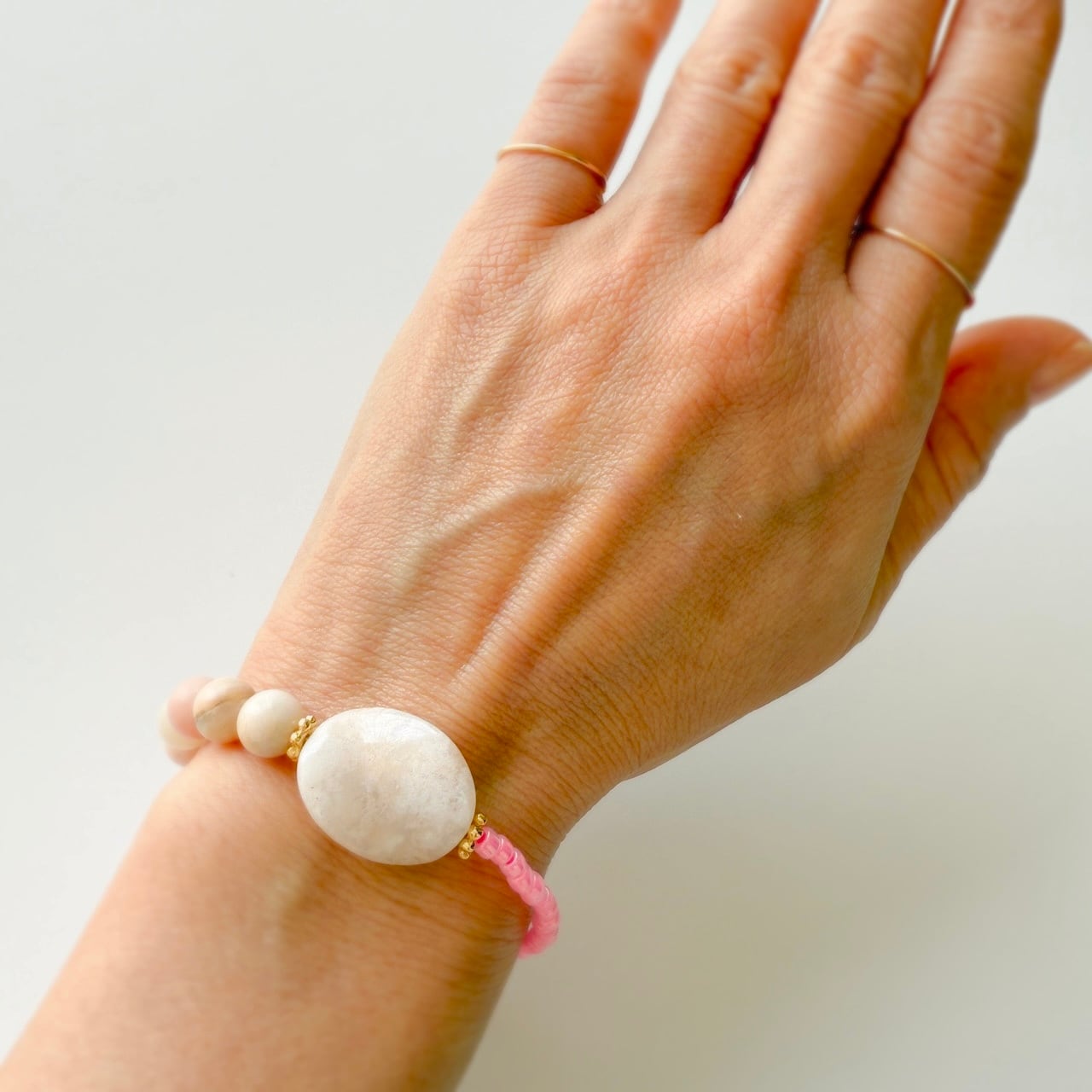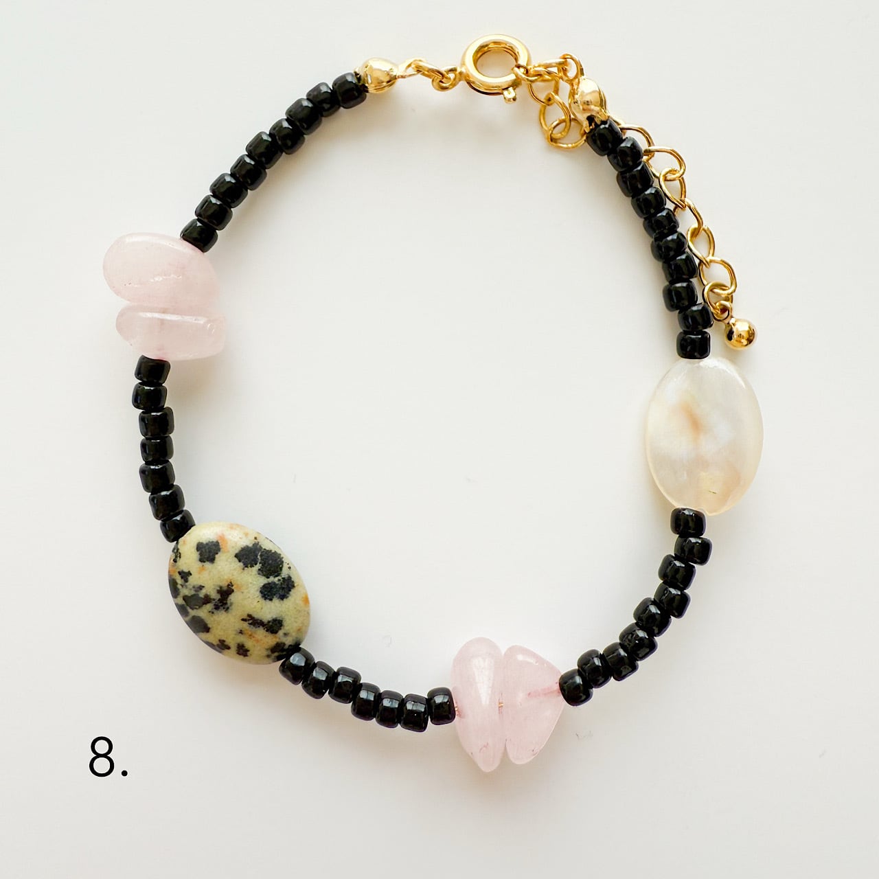 8. マダガスカルローズクォーツ、ダルメシアンジャスパー、マザーオブパール