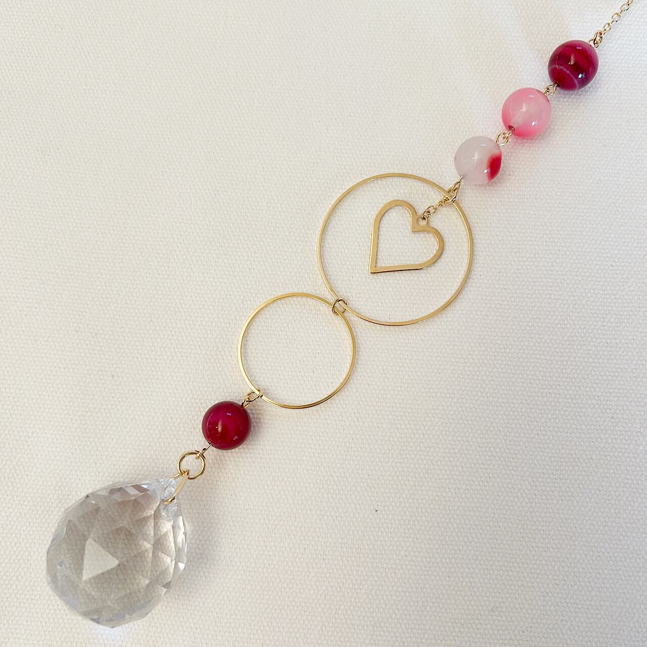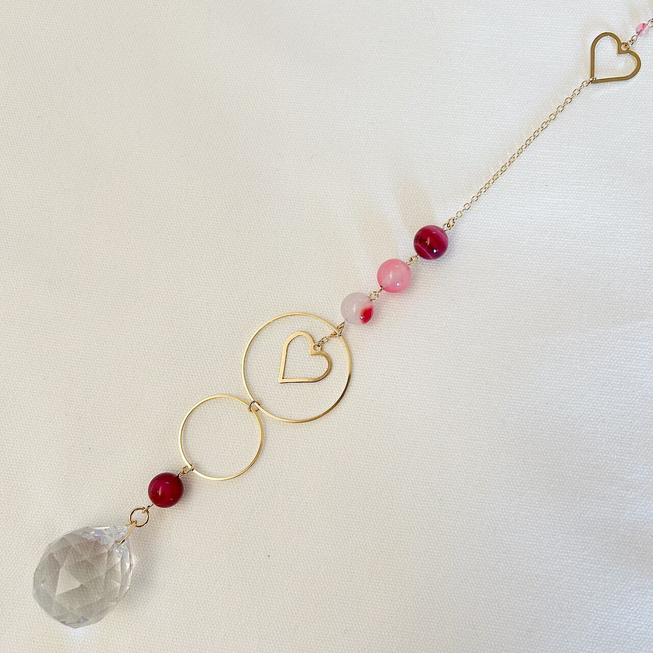 愛と豊かさを象徴するピンクラインアゲートのサンキャッチャーです。